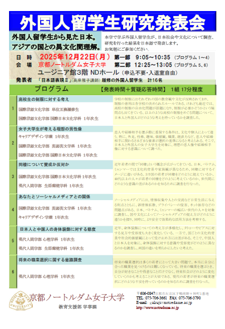 主催・問い合わせ先:京都ノートルダム女子大学 学事課