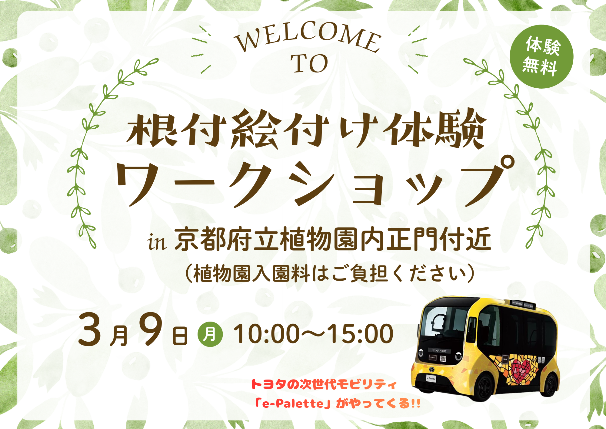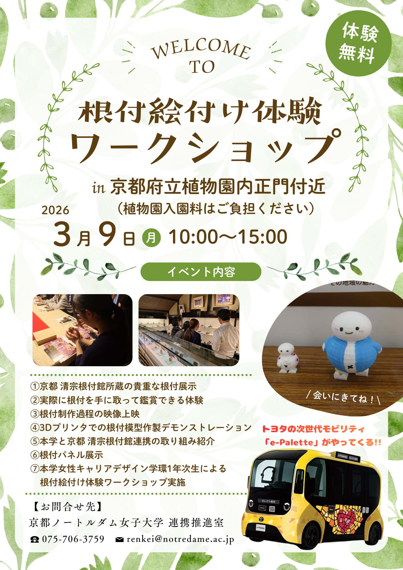 3月9日(月)、京都府立植物園正門付近にて、根付の絵付け体験ワークショップを開催します。