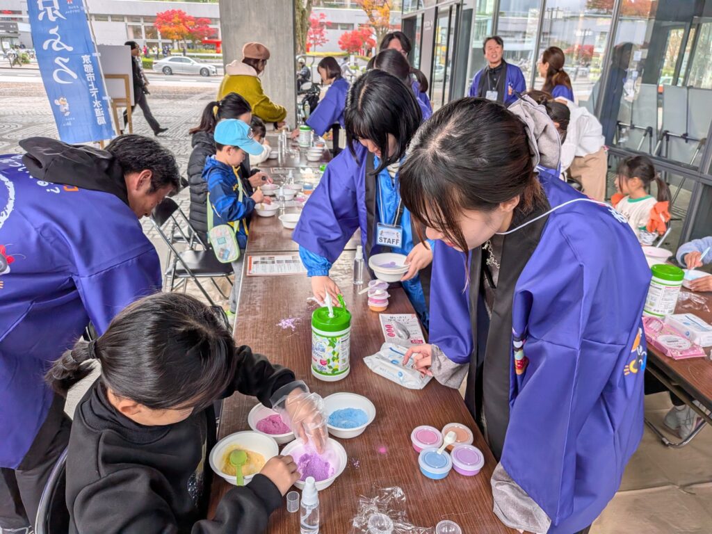 おふろ部はお揃いのハッピを着て、「バスボムづくり ワークショップ」のお手伝いをしました。