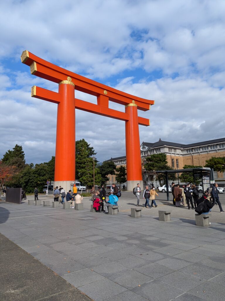 (ロームシアター京都は、大きな赤い鳥居で有名な平安神宮のすぐ隣です。また岡崎公園に隣接しています。)