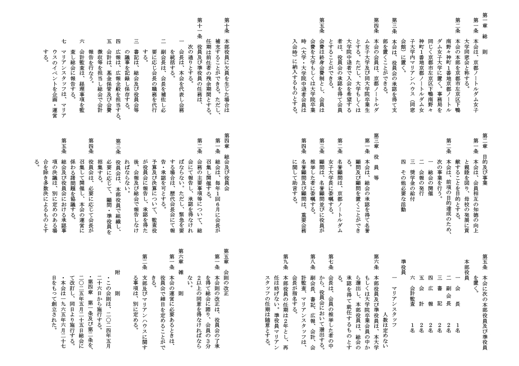 京都ノートルダム女子大学 同窓会会員個人情報管理規程