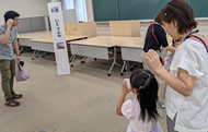 例えば、「見る」遊びでは、心理学の「錯視」の現象を体験してもらうコーナーや小さな世界をのぞいてみる「ファーブル顕微鏡」を使った観察、「偏光万華鏡」づくり、蛍光クレヨンで描いた自分の絵を暗室に入って「ブラックライト」で照らし出してみるという遊びをしました。
