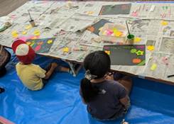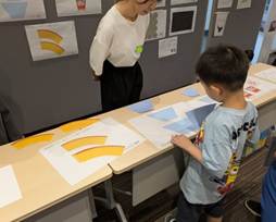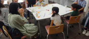 五感の中の味覚そのものをテーマにした遊びはできませんでしたが、一つ一つの遊びを味わいながらゆっくり楽しむ時間が過ごせたのではないかと感じています。ボランティア学生の感想には、子どもの発想の自由さ、シールの貼り方ひとつにも個性が現れること、子どもの持つ力(原動力)の強さに触れ驚いたとありました。また、親御さんの感想にも子どもさんが帰宅後「楽しかった!」という姿を報告してくださったり、子どもたちの生き生きした姿を見られたことがよかった、とあり私たちスタッフもとても嬉しく思いました。