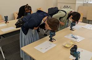 ファーブル顕微鏡での観察は、これまで屋内外の活動で毎回行ってきました。今回は、8つの自然の素材を観察してみて一番好きなものに投票する「好きなものコンテスト」を行いました。コンテストの結果、一番人気は玉虫でした。これは10年以上前に拾われたものですが、美しさはおそらく生きていた時から変化していないのでしょう。歴史的には法隆寺の玉虫の厨子が有名ですが、自然のなかの美を愛する心は昔も今も変わらないようです。