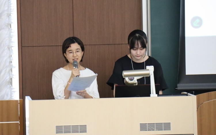 メインイベントであるスピーチコンテストでは、尾崎ゼミ・松島ゼミの学生2名が登壇しスピーチを行った他、本学学生・教職員によるトークセッションも行い、さらに幹事校として尾崎ゼミの4年生が司会進行を行う等、イベント運営にも参画しました。
