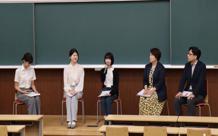 トークセッションでは、学生よりゼミで行った調査結果で印象に残ったことや今後、社会で取り組むべきだと思うことを発表し、その後、本学教員、職員も交えて、「誰もが快適な生理」を実現するための学内および社会での課題についてディスカッションを行いました。