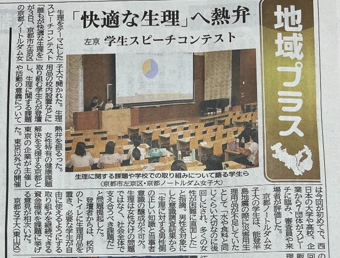 京都新聞8月4日朝刊「快適な生理」へ熱弁 学生スピーチコンテスト