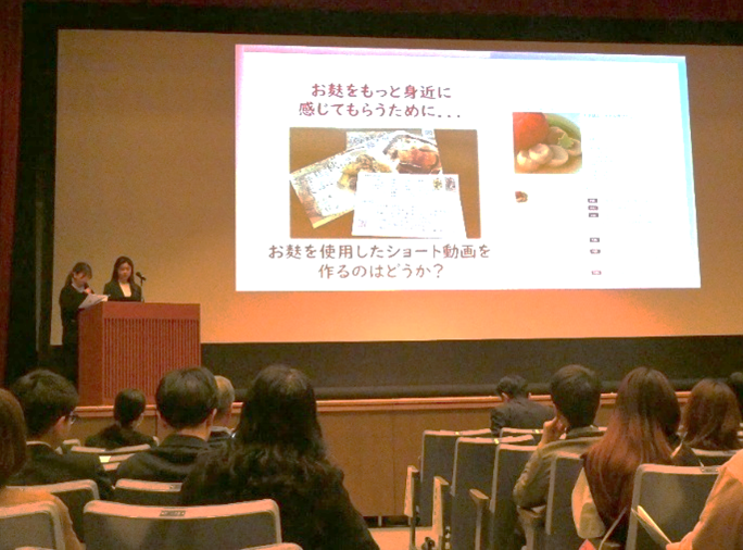 会場では学生達がオリジナルで作成した「お麸」を使った料理動画も見て頂きました