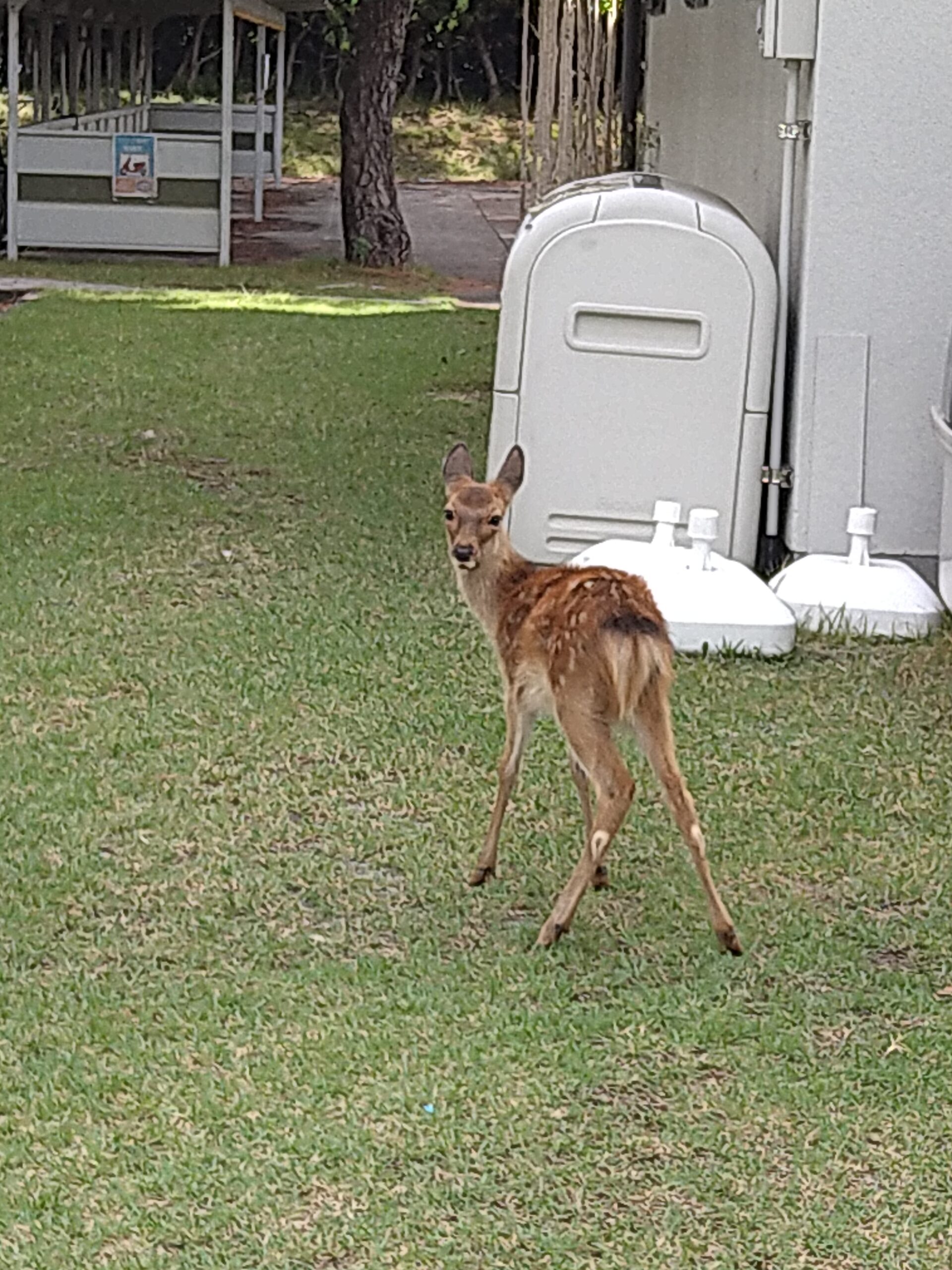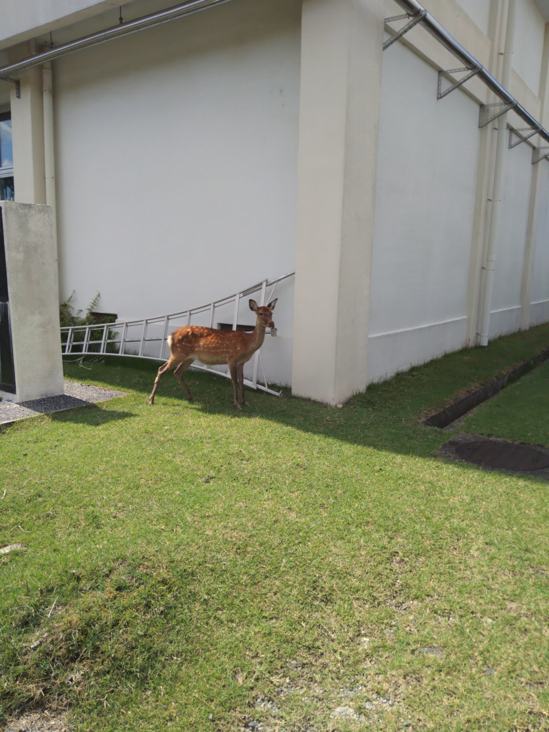 最後に、キャンパス内を散策したときの写真を載せて、報告を終えようと思います。ちなみに、鹿の皆様。私が近づくとすぐに逃げようとされたのですが、どの方も「ごめんなさい。写真を撮りたいだけなんです。お願いします、悪い人じゃないです。ほら、スマホしか持ってないです」とお願いしたら止まってくれ、写真を撮らせてくれました。そして、「ありがとう、もう撮りました」とお礼を述べたら離れていきました。