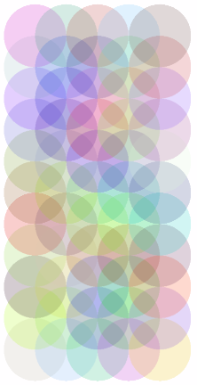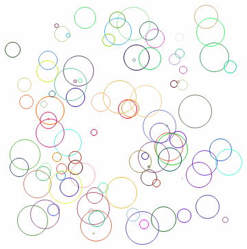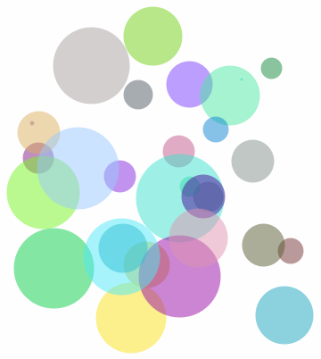 左は、透明度を調整し、カラフルで優しい色の円を散りばめています。淡い雰囲気がかわいいですね。真ん中は、色を塗りつぶさないで、大小さまざまな円がまるでシャボン玉のようです。また、右は同系色の色の円を重ねて、円の固まりを作っています。右上に1つだけはみ出た小さな円がアクセントとなっていて面白いですね。