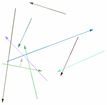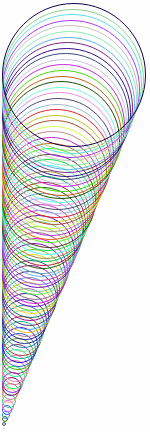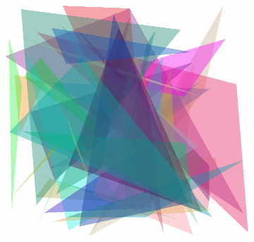 左は、〇を△に変更した作品です。△は角度が異なるとかなり尖っているのでシャープさが際立ちます。真ん中は、〇を→に変更した作品です。これも前衛芸術みたいで面白く発想が面白い!右は、ランダムに配置するのではなく、左端から円をだんだん大きく配置するようにプログラムを変更してくれました。カタツムリみたいでかわいいです。
