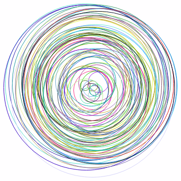 本授業では、プログラミング実習として、Wolfram言語のグラフィック関数を使って、アートプログラミングを行います。基本はランダムにたくさんの丸を散りばめて、おしゃれなアートを作るという課題でしたが、学生さんは、毎年、基本を超えた素敵な作品を作ってくれます。