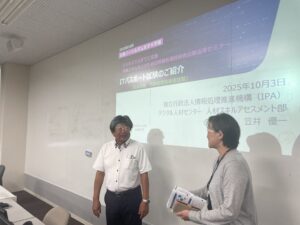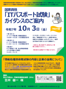 2025年10月3日(金)、本学に経済産業省 独立行政法人 情報処理推進機構(IPA)より笠井優一様を迎えて、国家試験「ITパスポート試験」ガイダンスを実施しました。
