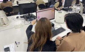 ・高校生がプログラムをどう変更してよいか分からなくなっている時に大学生が「こういうのはどう?」と具体的に教えていた。