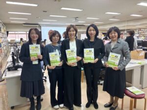 の5名の執筆者のうちの3名はノートルダムを本拠地としていますが、残りの2名は関東在住でしたので、書籍が発行できた後、まだ5名全員が集合できていませんでしたが、今回の公開授業で5名は本を手に写真を撮ることができました(華頂女子高等学校にて)。ありがとうございました。