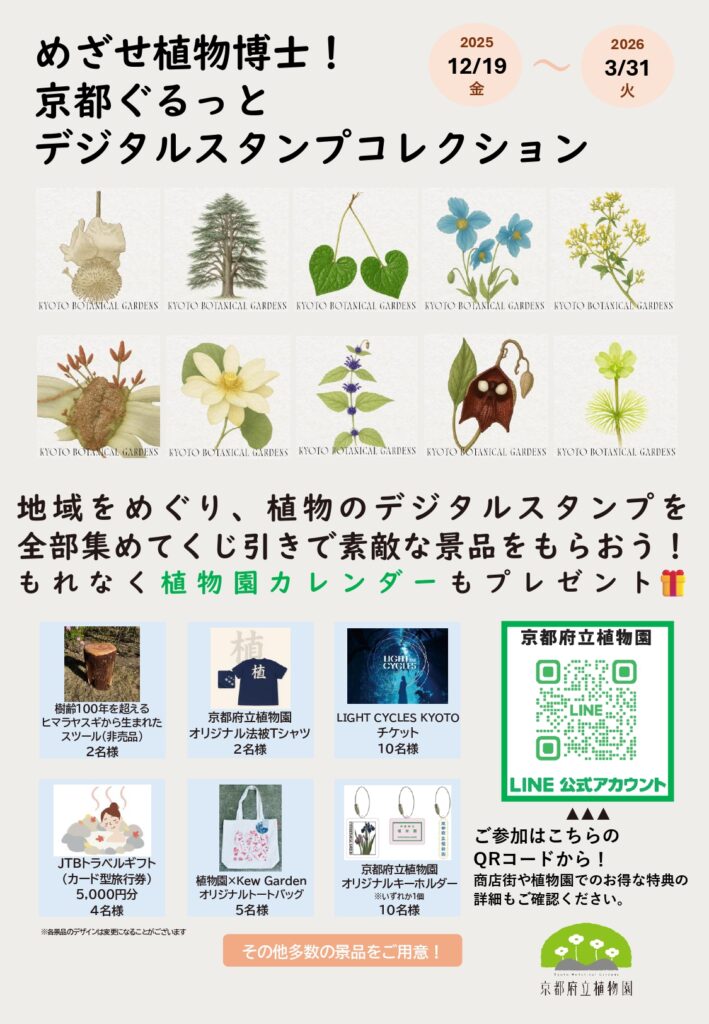 京都府立植物園では、『めざせ植物博士!京都ぐるっとデジタルスタンプコレクション』と題したスタンプラリーが開催されています。