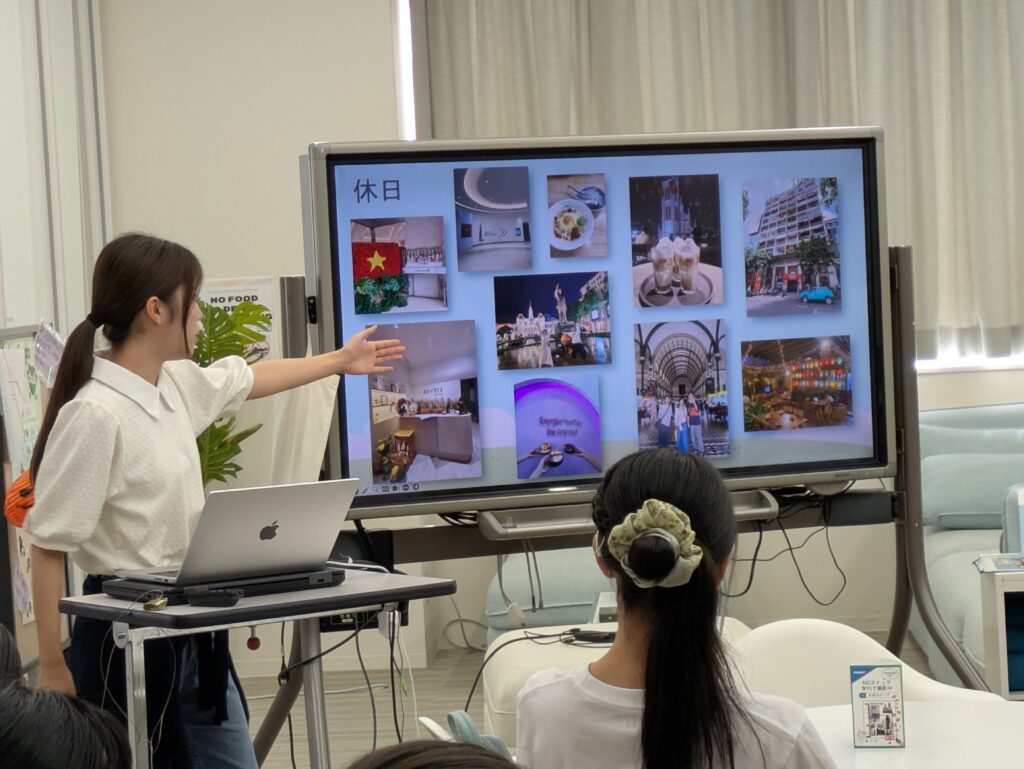 本年度夏に行われた海外ボランティア研修(科目名「海外ボランティア実践」)の報告会が2025年10月6日から10月8日の昼休みにi-Spaceで行われました。