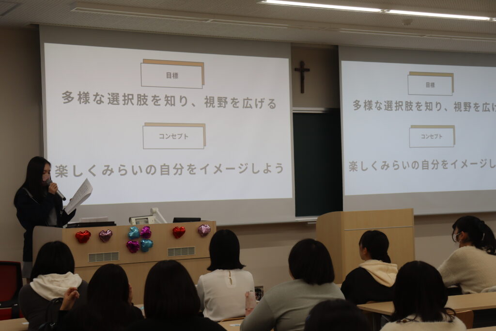 本学がノートルダム女学院中学高等学校「プレップ総合コース」と毎年開講しているキャリア教育授業~主体的に“私らしい未来”を創造していくための~「みらいデザイン☆プログラム」のひとつ『みらいデザイン☆ハイスクール 』が11月18日(土)に開催されました。