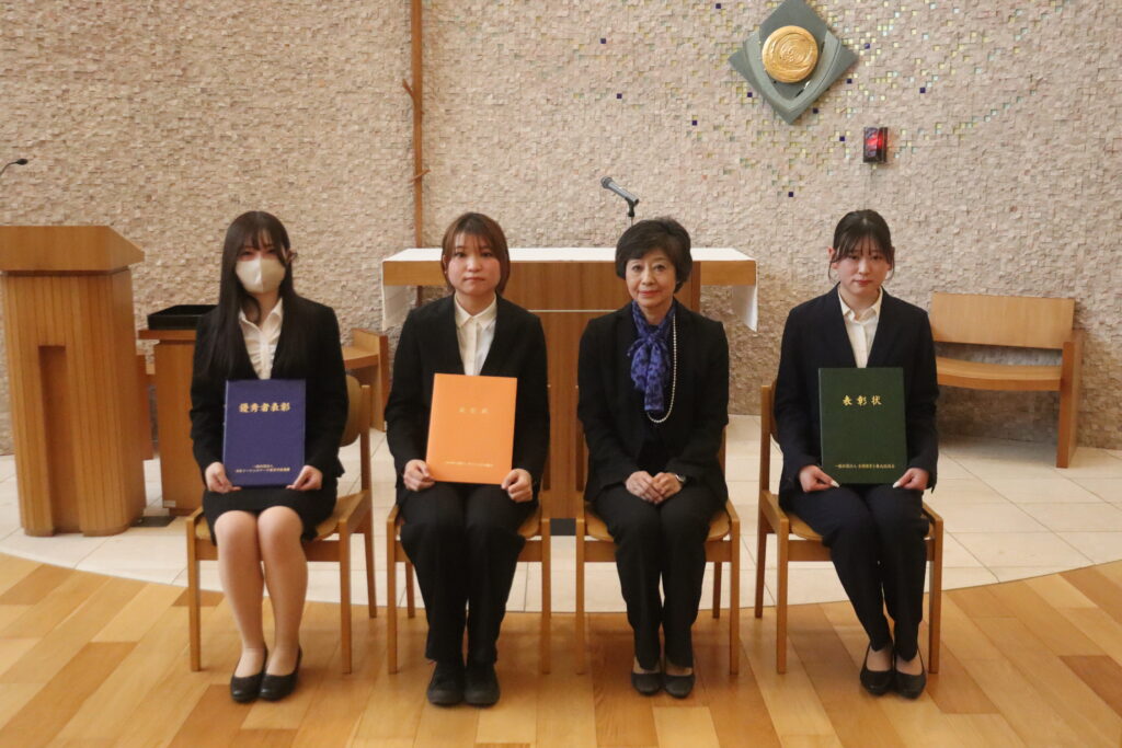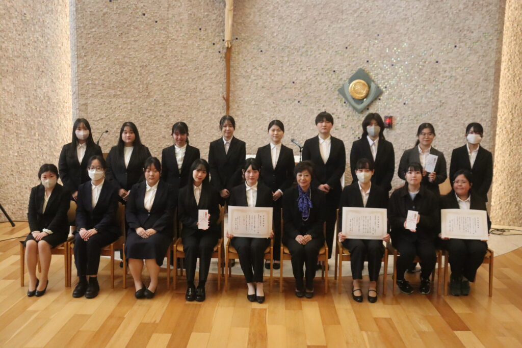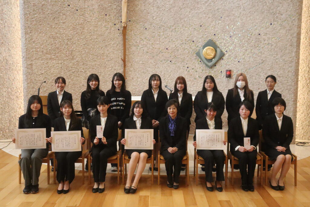 ユージニア館3階 聖堂にて3月13日、学生表彰式を執り行いました。