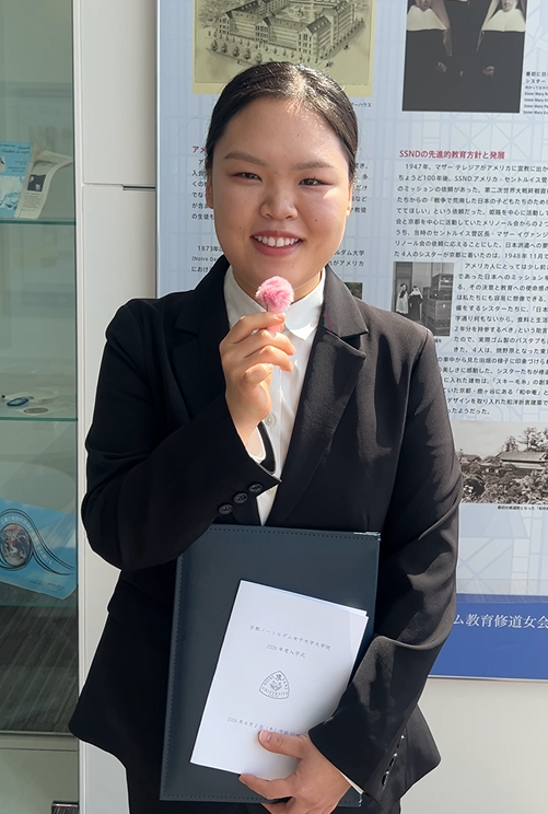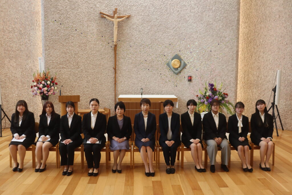 桜が満開に咲いた4月2日(木)、ユージニア館聖堂にて2026年度大学院入学式が執り行われました。今年度は、大学院生9名が入学しました。